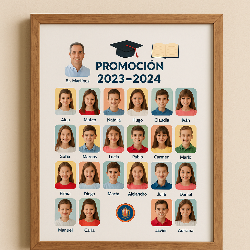 - Añade un título general, por ejemplo: «Promoción 2023-2024» o «Graduación 4º ESO».